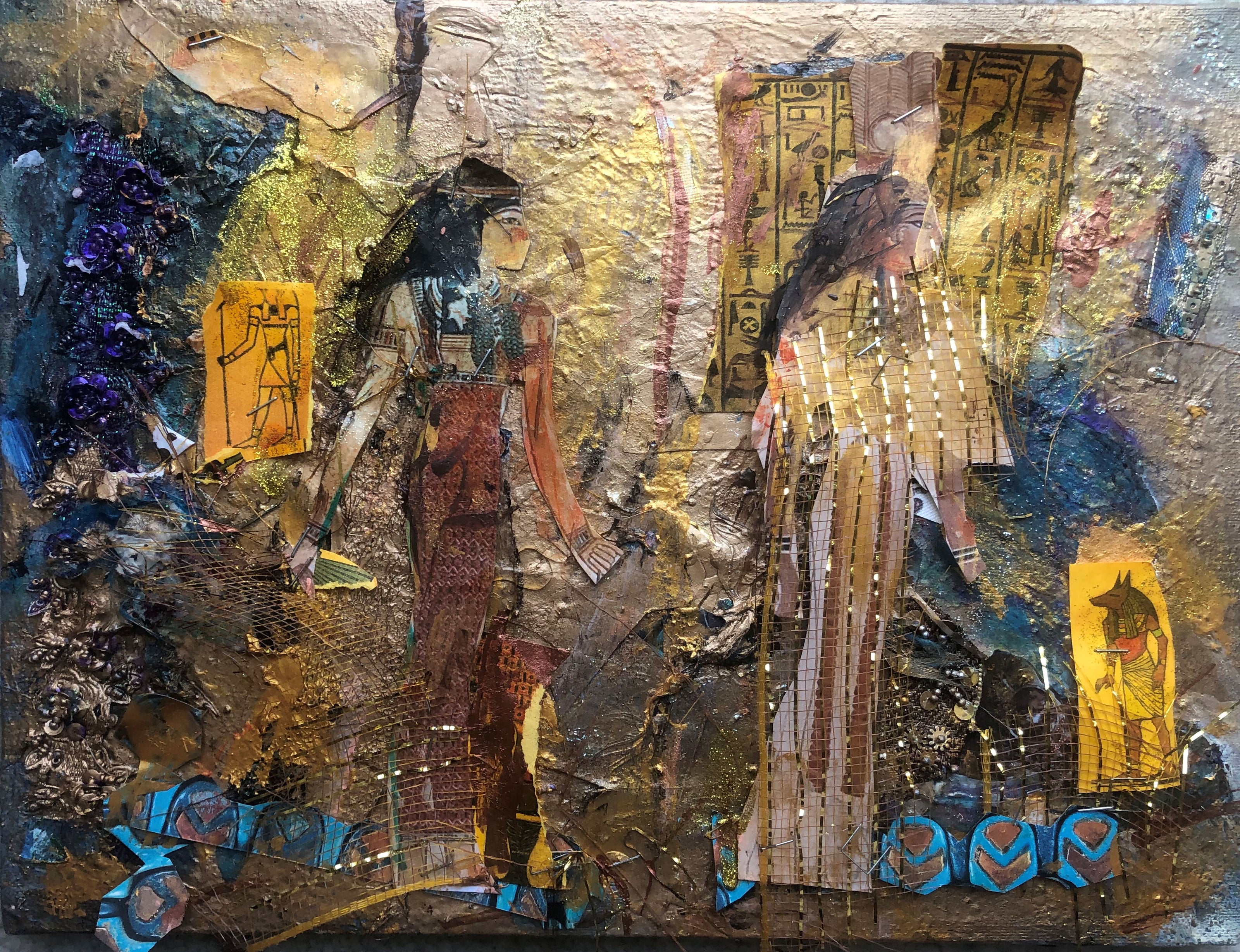 In this painting, you see the love and admiration between Nefertiti and goddess Isis, and they were heading to a big party celebrating one of their holidays