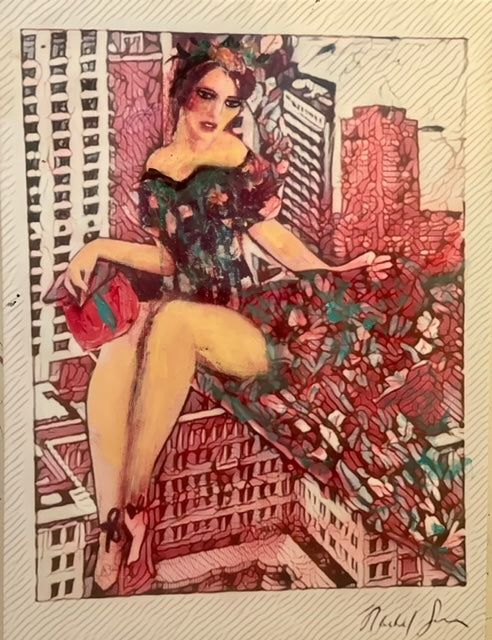 This lovely lady is it whimsical and daring to be sitting on the rooftop all by herself